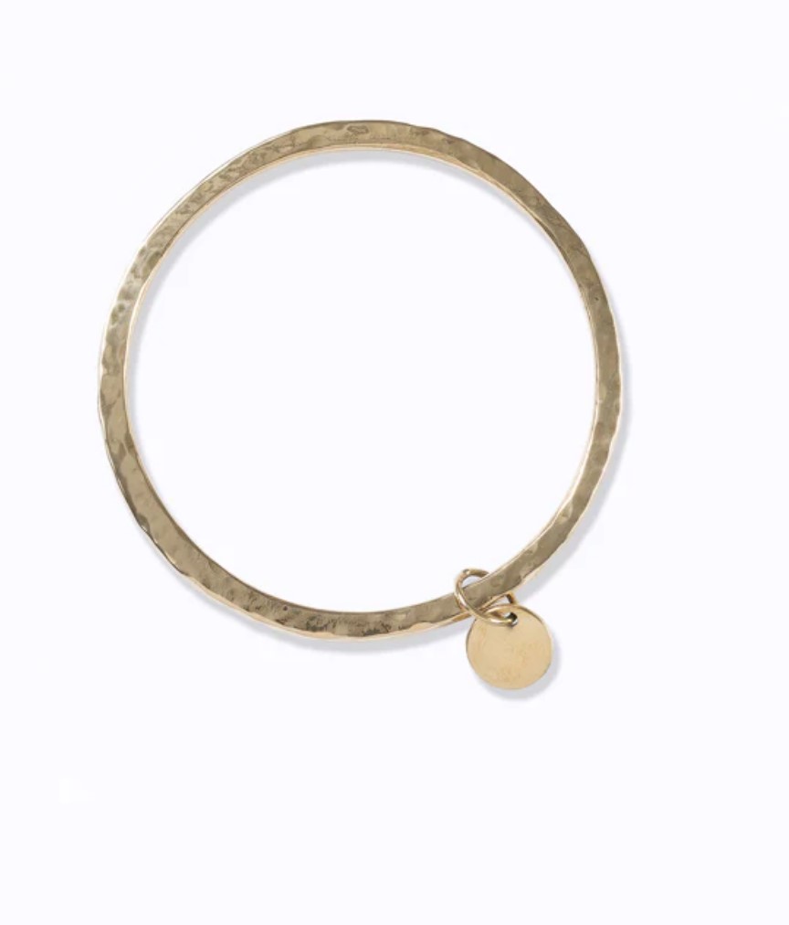 Handmade recycled brass bracelet; slightly hammered to create a beautiful texture. The prefect gift for yourself or a friend and can be stacked with the African Disc Bangle as a statement arm piece.