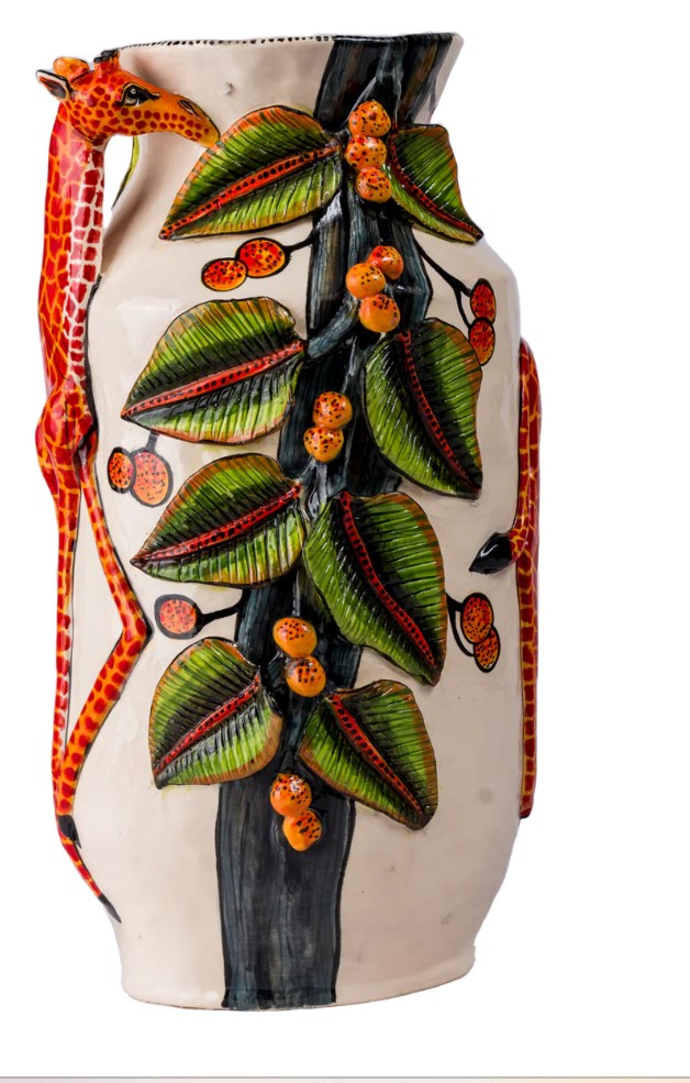 Slim giraffes - Large hand painted 3D ceramic vase.