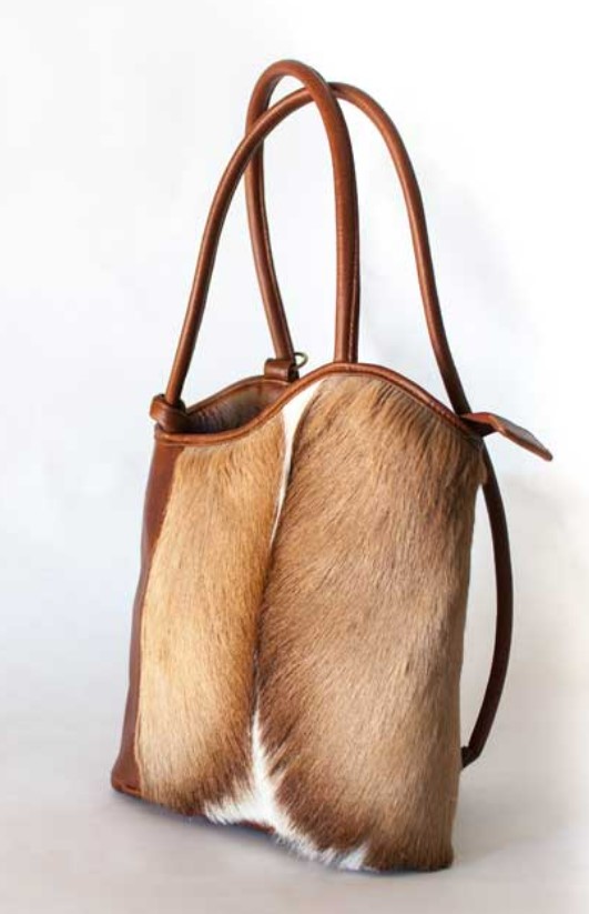Handbag made with A grade genuine springbuck hide and leather.