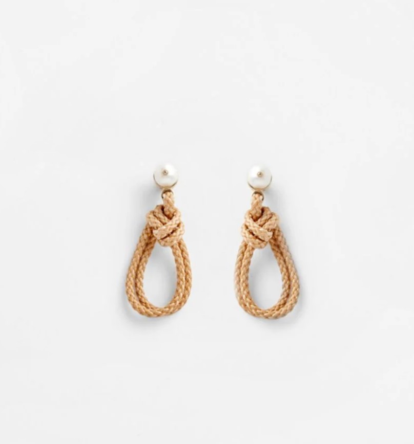 Brass and fresh water pearls looped with braided rope.