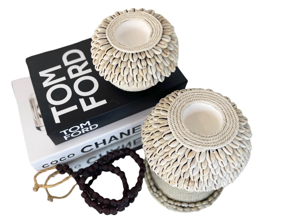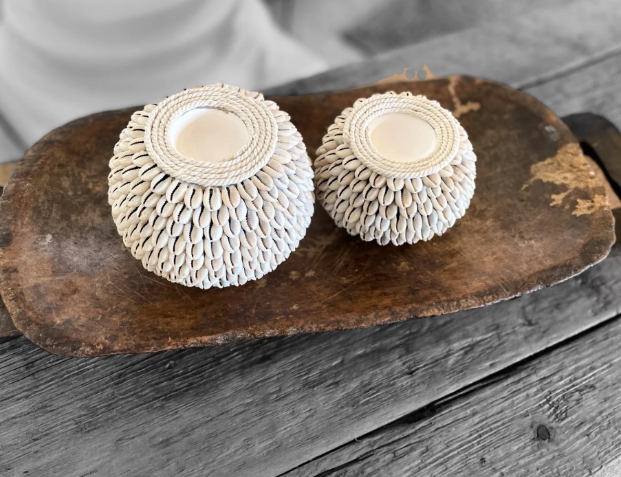 Off White Cowrie Shell Tea Lights - 7" x 7"