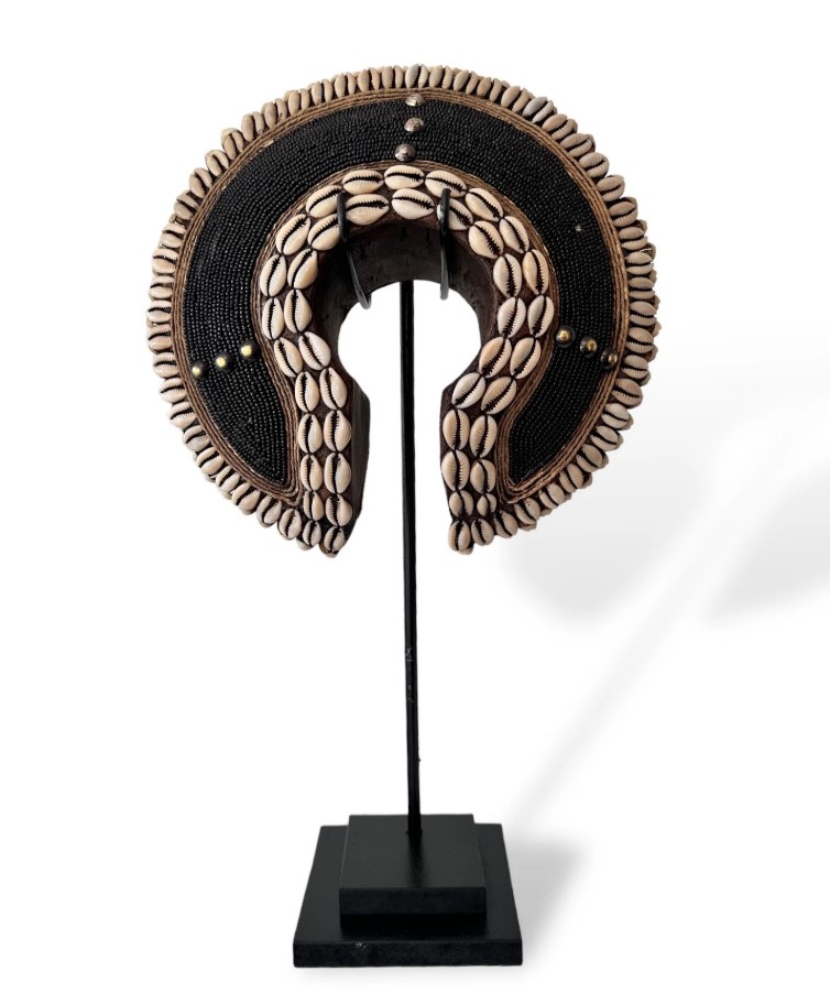 Tikar Bangle half moon large made from beads and cowrie shells.