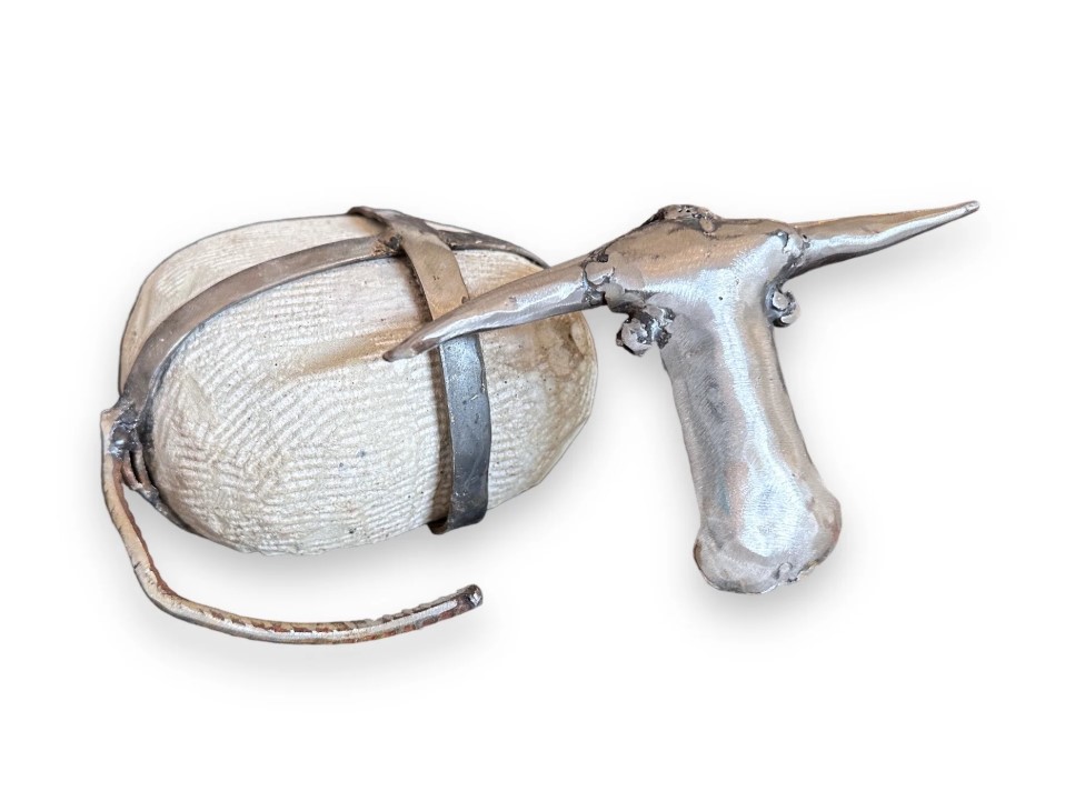 White stone cow reclining made from handpicked rocks.