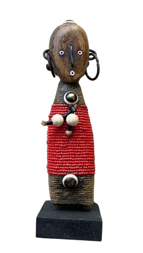 Wooden beaded Namji dolls from West Africa - Red.